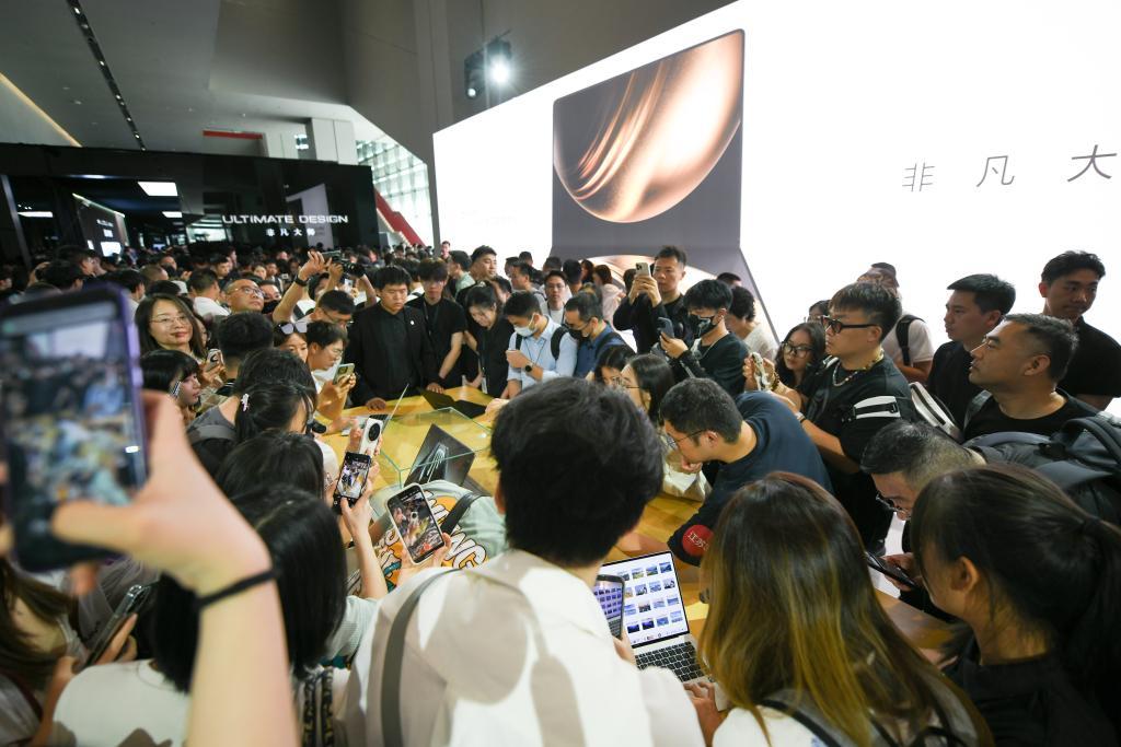 5月19日,消费者在发布会后体验鸿蒙电脑。5月19日,华为在成都正式发布两款鸿蒙电脑,这是鸿蒙操作系统首次在电脑端正式发布,在电脑操作系统领域迈出新步伐。新华社记者 胥冰洁 摄